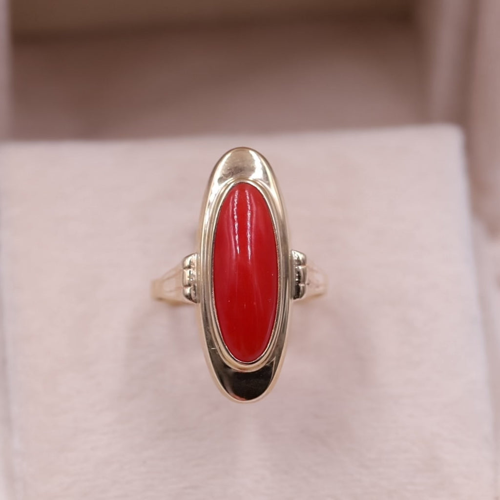 Винтажное кольцо из 8-каратного желтого золота с красным кораллом